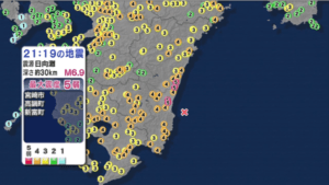 ![]() | 津波注意報が発表中 宮崎県で最大震度5弱の強い地震 南海トラフ地震臨時情報(調査中)が発表 …灘を震源とする地震が発生し、宮崎市などで震度5弱を観測しました。 気象庁によりますと、震源地は日向灘、震源の深さは、およそ30キロ、地震の規模を示すマグニチュードは6… (出典:) |