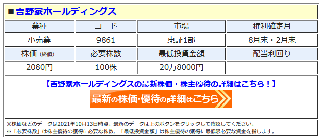 ![]() | 「松屋」と「吉野家」株主になるにはいくら必要?「株主優待」の内容と枚数は?1年間のリターンはいくらか …今月はボーナス月という方もいるでしょう。 ボーナスの使い道の一つとして、株式投資を考えている方もいるのではないでしょうか。 株式の優待や配当金に魅力… (出典:LIMO) |
